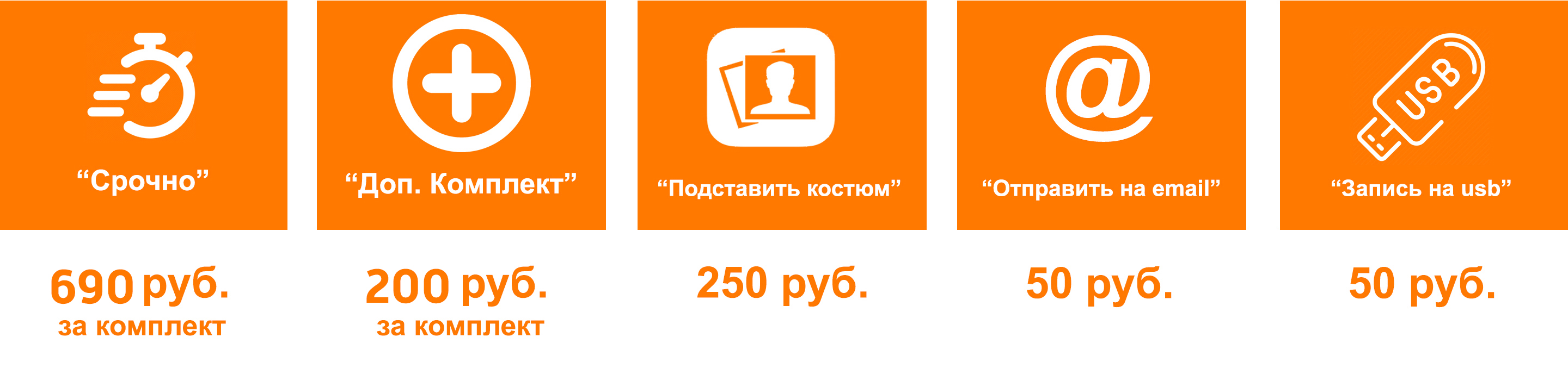 - Сложная ретушь (выравнивание прически, удаление подбородка и пр.) оплачивается отдельно;